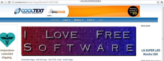 Cooltext is free application that allows you to create beautiful logo designs for your projects, it is free to use it and simple to operate. The application requires no sign ups or registration, simply choose the graphics that you want for your logo and go ahead with the text. Application has no interface as such, just simple steps to create simple yet effective designs.