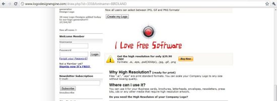 Step 3- This is the last step to your logo designing, you can download your creation and use it for printing purpose or put it into your professional stationery. If you want to save your logo then you must open a free account with the website and access to your creation anytime later.