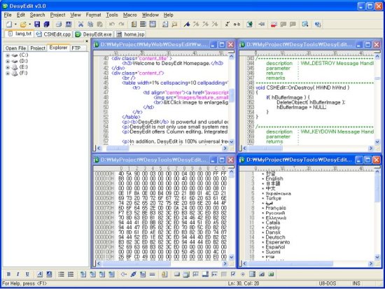 - HEX edit: You can edit binary file using DesyEdit’s HEX mode. Also supports Undo/Redo in binary mode.