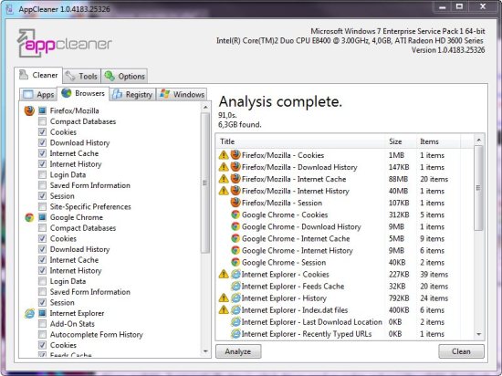 • Cleans Internet browser histories, cookies, temporary file cache, download history, login and forms data from your PC