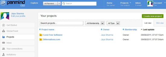 Panmind is a free online project management service that allows you to create, manage, present, promote and share every kind of project. It is very simple and straightforward to use and works very fast all at one single location. It is a project management platform that has an actual social touch, because it lets you promote and share what you do.