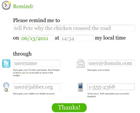 Application interface is yet very simple and direct. The web page form has important details that app requires and the reminder will be sent to you on your email, Jabber or gmail account and also twitter account. The application is easy to operate, and message yourself with the reminder details. You can also set the time and date for the reminder alerts. The application also sends the reminders to your cell phones.