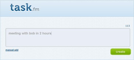Task.fm is free reminder tool that helps you to create sms, email and twitter account messages. The application is very easy to understand and operate. You do not need any tabs and windows, just format a reminder in your natural language and the reminder will be scheduled for you. The application is designed to understand lain English. For example, if you want a reminder for your meeting than just mention “meeting with Bob on Thursday at 2PM”