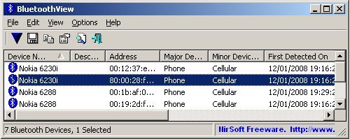 You can also translate BluetoothView to other languages. BluetoothView does not require any installation. In order to start using it, simply copy the executable file (BluetoothView.exe) to any folder of your choice and run it. After you run it, BluetoothView will start to gradually display all detected Bluetooth devices around you.