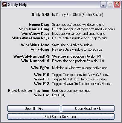 - Gridy also lets you store and restore a window’s size and position in up to 9 slots.