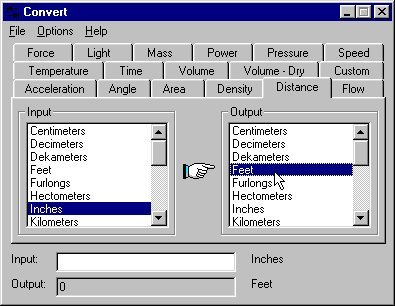 As you start up the application, you will see the window where various tabs are presented. All the tabs are differentiated with the units for the conversion. For example if you want to convert units for the category of Distance, than just click on the Distance- tab. In the tab you will observe drop down menu containing list of input units and parallel list of output units. When you have made the necessary selection, just put in your values and gain the output.