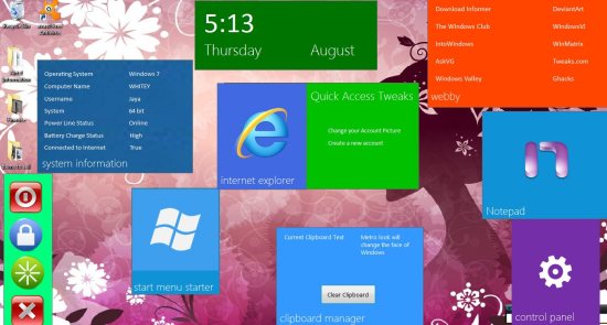Pulmon is a free app which brings Windows 8 like features for your desktop. It arranges data in format of beautiful metro tiles. These tiles contain various options like Internet Explorer, control panel, etc. Clicking on these tiles will open the respective program.